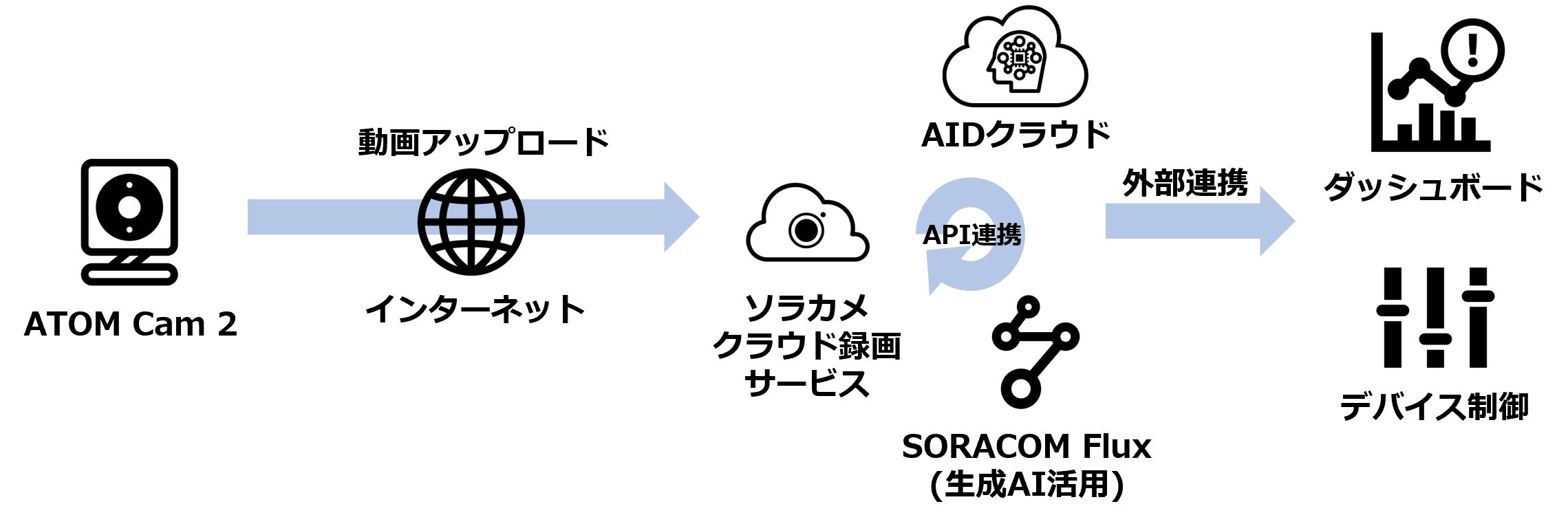 「ソラカメ」+「SORACOM Flux」を活用したキット。ソラカメクラウドカメラサービスに様々なアプリをアドオンできます。